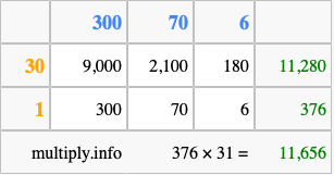 Finally, we add up all the sums we found in step 3 to get our final answer to 376 times 31.