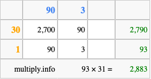 Finally, we add up all the sums we found in step 3 to get our final answer to 93 times 31.
