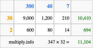 Below is an illustration showing you how to calculate 347 times 32 using the box method, using the instructions above.