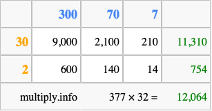 Below is an illustration showing you how to calculate 377 times 32 using the box method, using the instructions above.