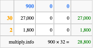 Finally, we add up all the sums we found in step 3 to get our final answer to 900 times 32.