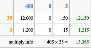 Finally, we add up all the sums we found in step 3 to get our final answer to 405 times 33.