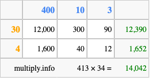 Finally, we add up all the sums we found in step 3 to get our final answer to 413 times 34.