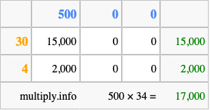 Finally, we add up all the sums we found in step 3 to get our final answer to 500 times 34.