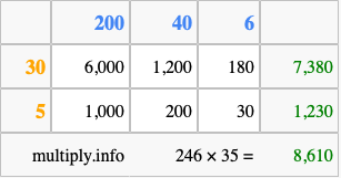 Finally, we add up all the sums we found in step 3 to get our final answer to 246 times 35.