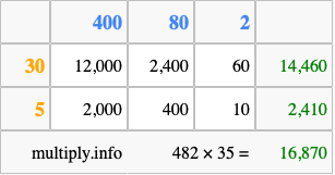Finally, we add up all the sums we found in step 3 to get our final answer to 482 times 35.