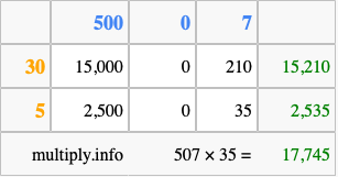 Finally, we add up all the sums we found in step 3 to get our final answer to 507 times 35.