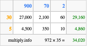 Finally, we add up all the sums we found in step 3 to get our final answer to 972 times 35.