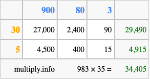 Finally, we add up all the sums we found in step 3 to get our final answer to 983 times 35.