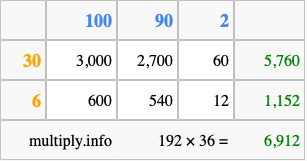 Finally, we add up all the sums we found in step 3 to get our final answer to 192 times 36.
