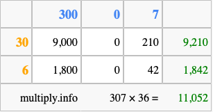 Below is an illustration showing you how to calculate 307 times 36 using the box method, using the instructions above.