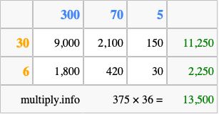 Finally, we add up all the sums we found in step 3 to get our final answer to 375 times 36.