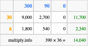 Finally, we add up all the sums we found in step 3 to get our final answer to 390 times 36.