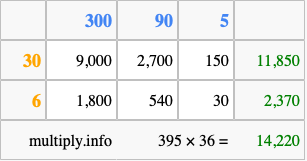 Finally, we add up all the sums we found in step 3 to get our final answer to 395 times 36.