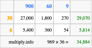 Finally, we add up all the sums we found in step 3 to get our final answer to 969 times 36.
