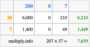 Below is an illustration showing you how to calculate 207 times 37 using the box method, using the instructions above.