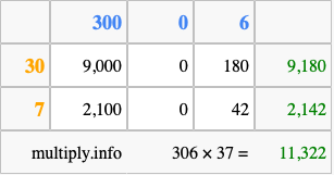 Finally, we add up all the sums we found in step 3 to get our final answer to 306 times 37.