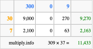 Below is an illustration showing you how to calculate 309 times 37 using the box method, using the instructions above.