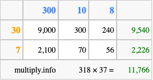Below is an illustration showing you how to calculate 318 times 37 using the box method, using the instructions above.