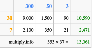 Finally, we add up all the sums we found in step 3 to get our final answer to 353 times 37.