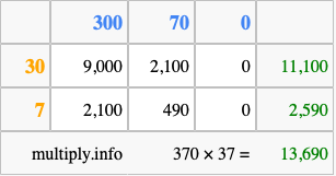 Finally, we add up all the sums we found in step 3 to get our final answer to 370 times 37.