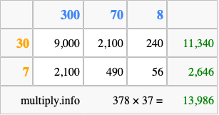 That's all there is to it! As you can see from the box above, the answer to 378 times 37 using the box method is 13,986.