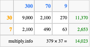 Finally, we add up all the sums we found in step 3 to get our final answer to 379 times 37.