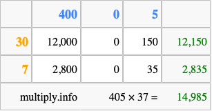 Finally, we add up all the sums we found in step 3 to get our final answer to 405 times 37.
