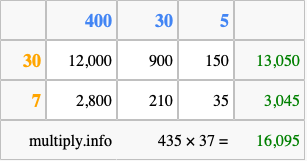 Finally, we add up all the sums we found in step 3 to get our final answer to 435 times 37.