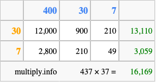 That's all there is to it! As you can see from the box above, the answer to 437 times 37 using the box method is 16,169.