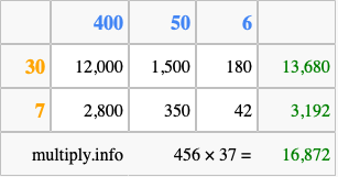 Finally, we add up all the sums we found in step 3 to get our final answer to 456 times 37.