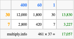 Finally, we add up all the sums we found in step 3 to get our final answer to 461 times 37.