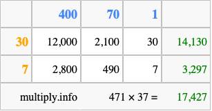 Finally, we add up all the sums we found in step 3 to get our final answer to 471 times 37.
