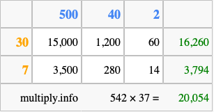 Finally, we add up all the sums we found in step 3 to get our final answer to 542 times 37.