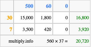 Finally, we add up all the sums we found in step 3 to get our final answer to 560 times 37.