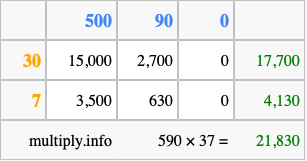 Finally, we add up all the sums we found in step 3 to get our final answer to 590 times 37.