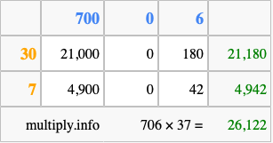 Finally, we add up all the sums we found in step 3 to get our final answer to 706 times 37.