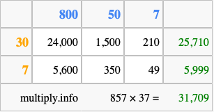 Below is an illustration showing you how to calculate 857 times 37 using the box method, using the instructions above.