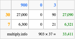 Finally, we add up all the sums we found in step 3 to get our final answer to 903 times 37.