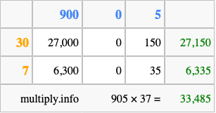 Finally, we add up all the sums we found in step 3 to get our final answer to 905 times 37.