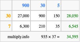 Finally, we add up all the sums we found in step 3 to get our final answer to 935 times 37.
