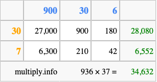 That's all there is to it! As you can see from the box above, the answer to 936 times 37 using the box method is 34,632.