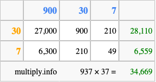 That's all there is to it! As you can see from the box above, the answer to 937 times 37 using the box method is 34,669.