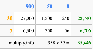 That's all there is to it! As you can see from the box above, the answer to 958 times 37 using the box method is 35,446.