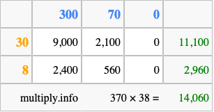 Below is an illustration showing you how to calculate 370 times 38 using the box method, using the instructions above.
