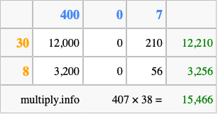 Finally, we add up all the sums we found in step 3 to get our final answer to 407 times 38.