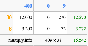 That's all there is to it! As you can see from the box above, the answer to 409 times 38 using the box method is 15,542.