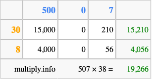 Below is an illustration showing you how to calculate 507 times 38 using the box method, using the instructions above.