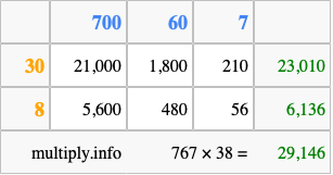 That's all there is to it! As you can see from the box above, the answer to 767 times 38 using the box method is 29,146.