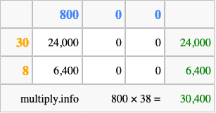 Finally, we add up all the sums we found in step 3 to get our final answer to 800 times 38.
